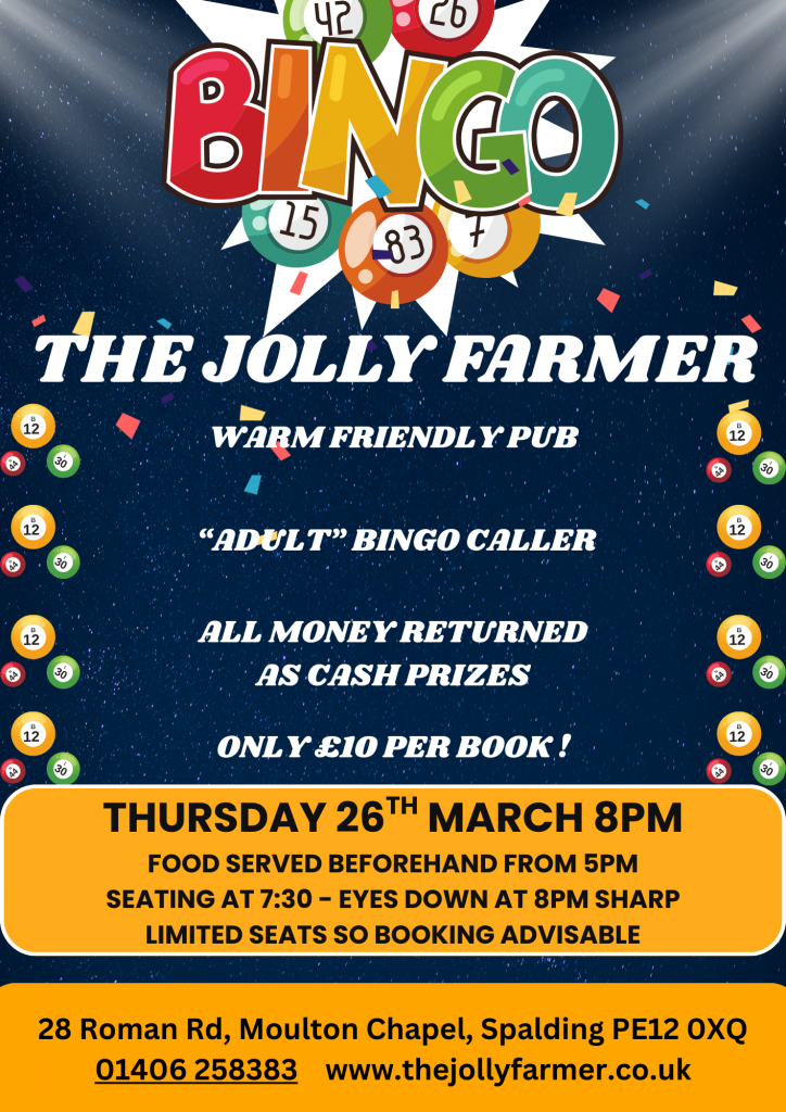 QUIZ NIGHT at The Jolly Farmer! Think you’ve got what it takes to be the brainiest in town? Grab your friends, bring your thinking caps and join us for a […] 🎉 BINGO NIGHT AT THE JOLLY FARMER! 🎉 Eyes down for a fun-filled night of Bingo at your favourite warm and friendly pub 🍻 ✨ “Adult” bingo caller💰 All money […] 🎤✨ KARAOKE & DISCO NIGHT ✨🎤This Good Friday at The Jolly Farmer! Ready to grab the mic and kick off the bank holiday in style? 🎶Join us for a fun-filled […]Quiz Night