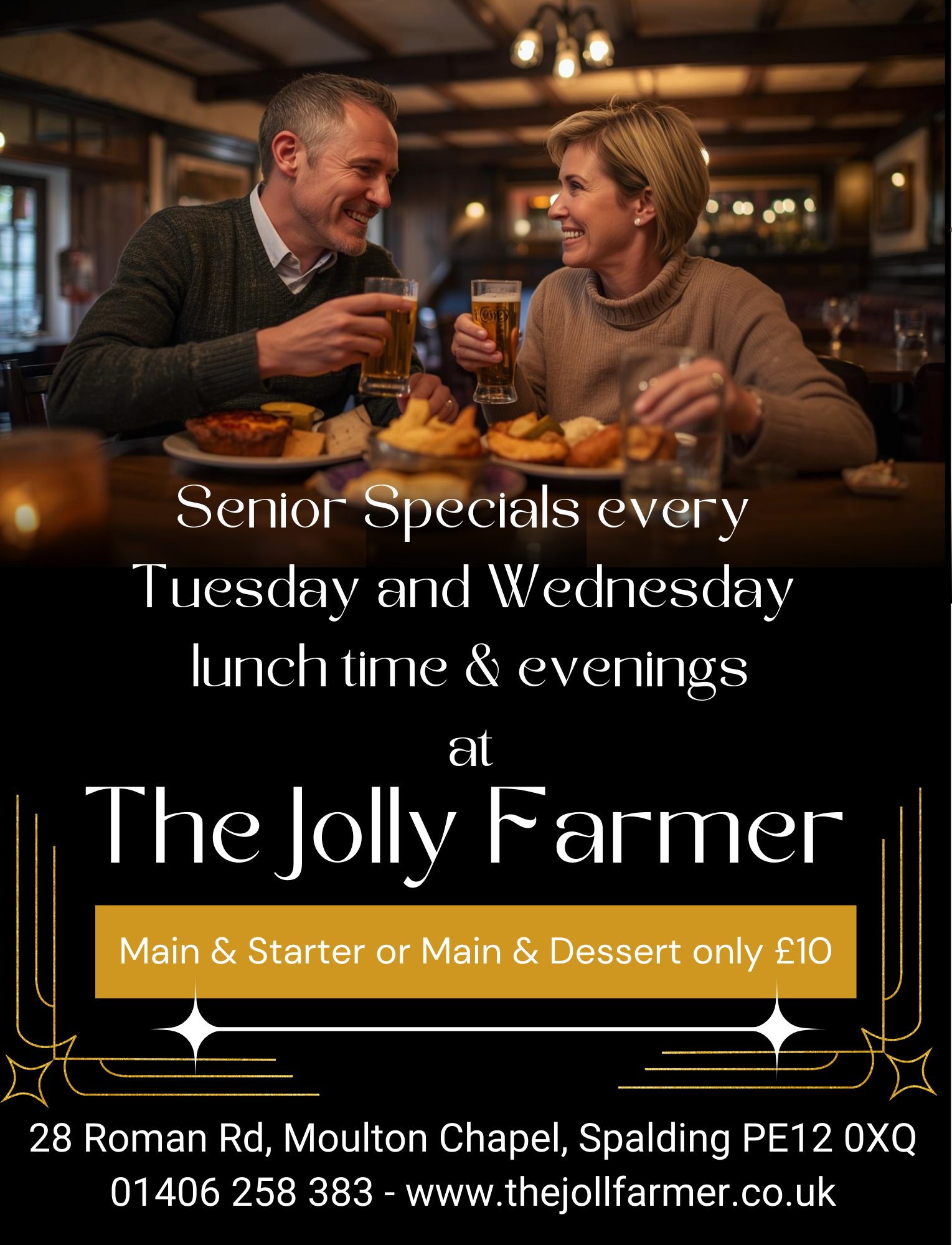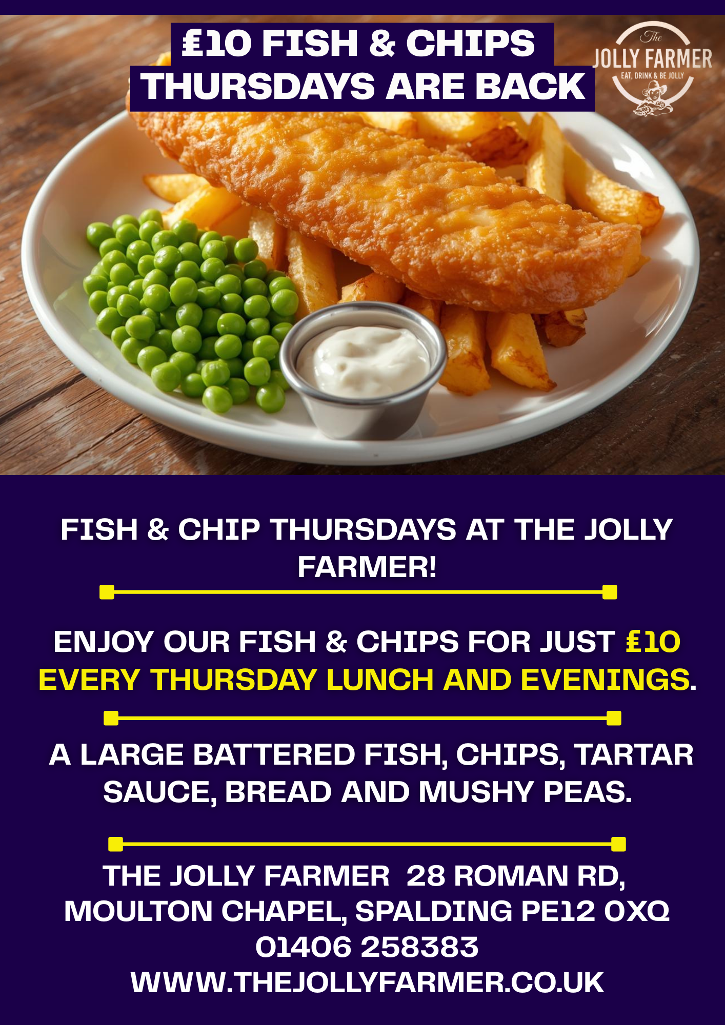 Is one of the few remaining “traditional” pubs / restaurants left in South Holland. Steeped in history, The Jolly Farmer in Moulton Chapel is a 100-year-old brick building. However, there has been a pub on the site since at least 1840, and it’s rumoured to have been an illegal drinking den as early as the late 1780’s.